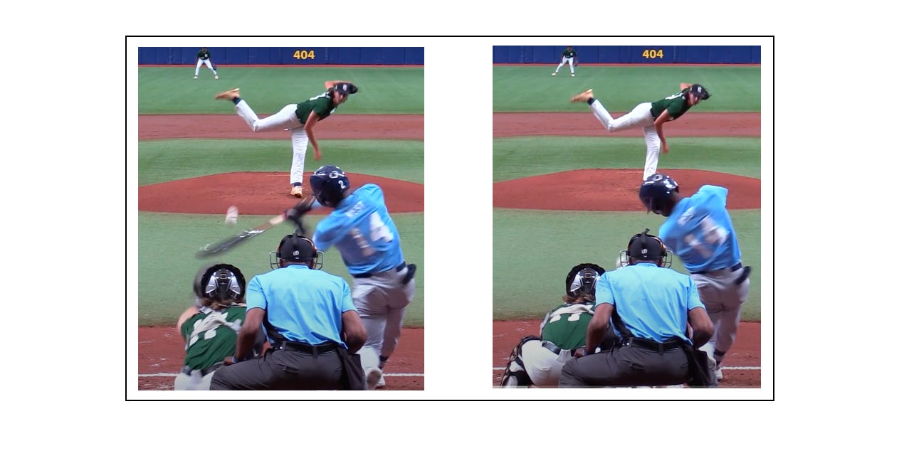 Another takeaway I took from watching Dean West at the 2022 showcase was his inability to hit pitches in the upper-third of the strike zone for hard contact. This can be attributed to his lack of swing-to-swing variation.