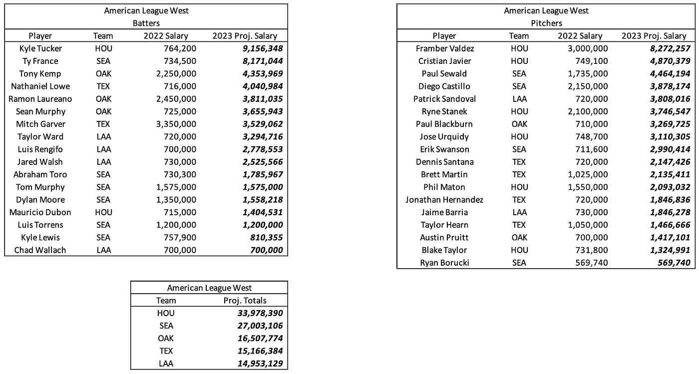 Below are the projected 2023 salaries for arbitration-eligible players in the American League West.